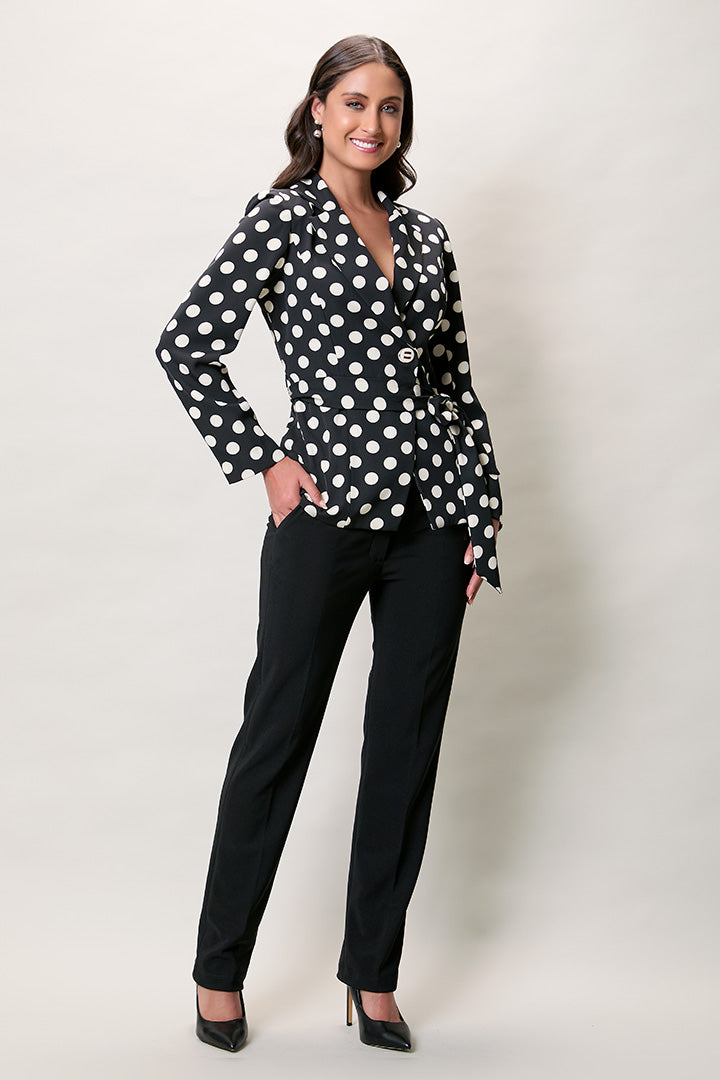 Descripción: Conjunto elegante con saco estampado y pantalón