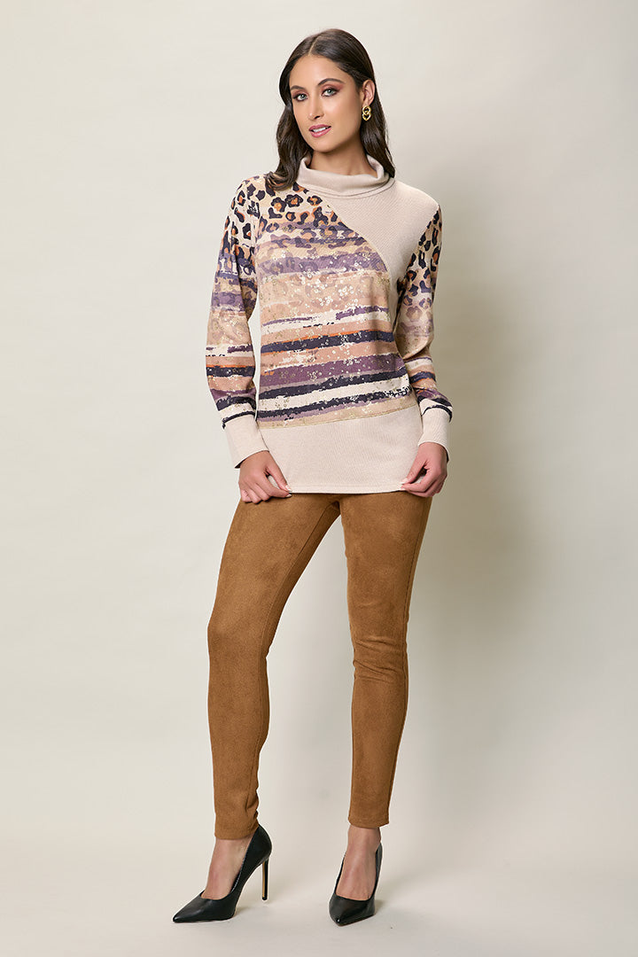 Descripción: Blusa casual invernal color beige con estampado