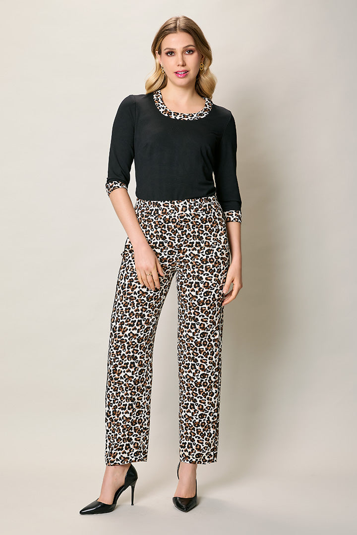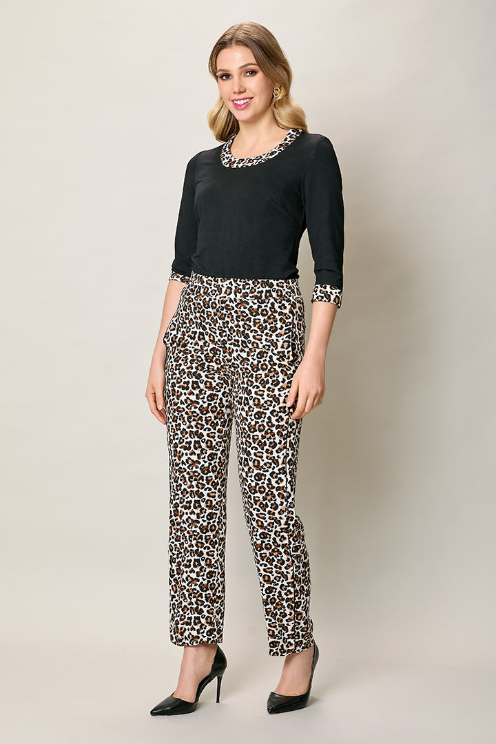 Pantalón casual pretina alta con estampado animal