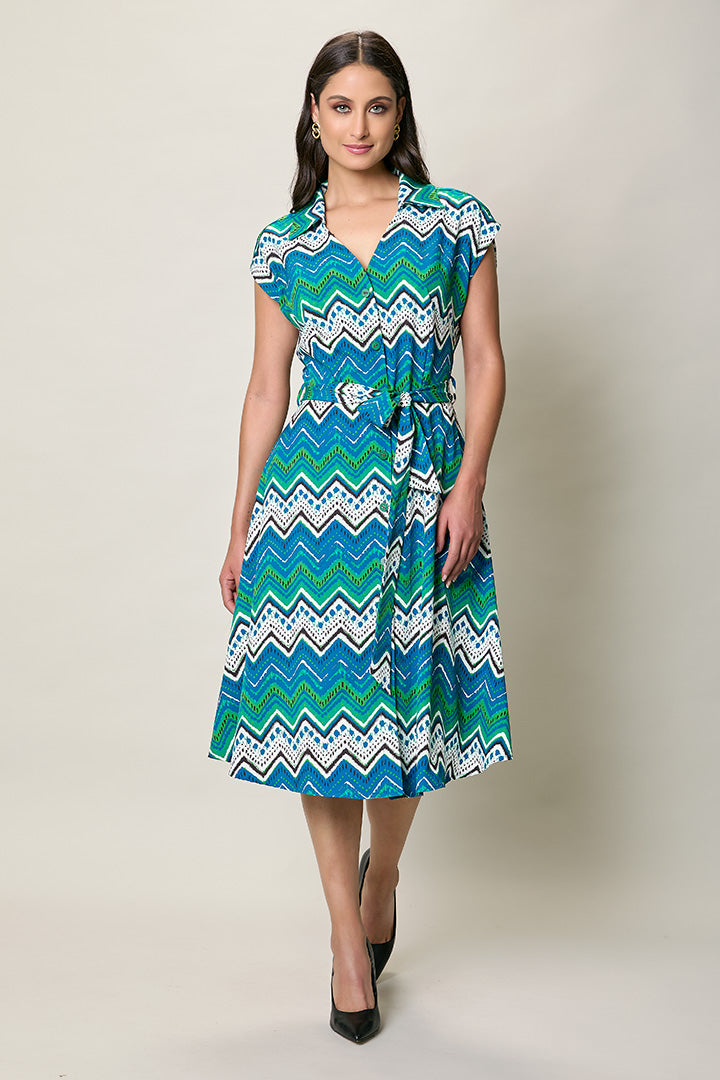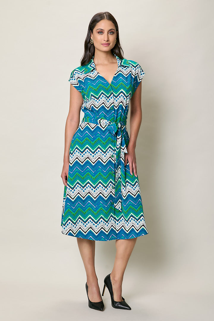 Vestido casual estampado color azul y verde