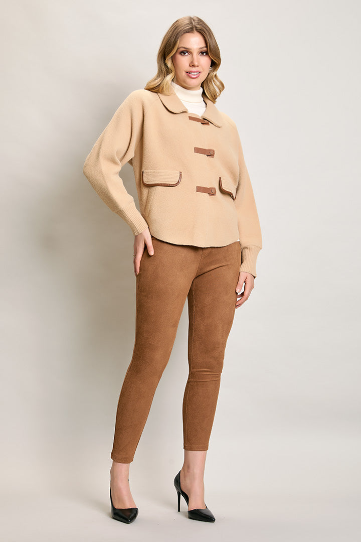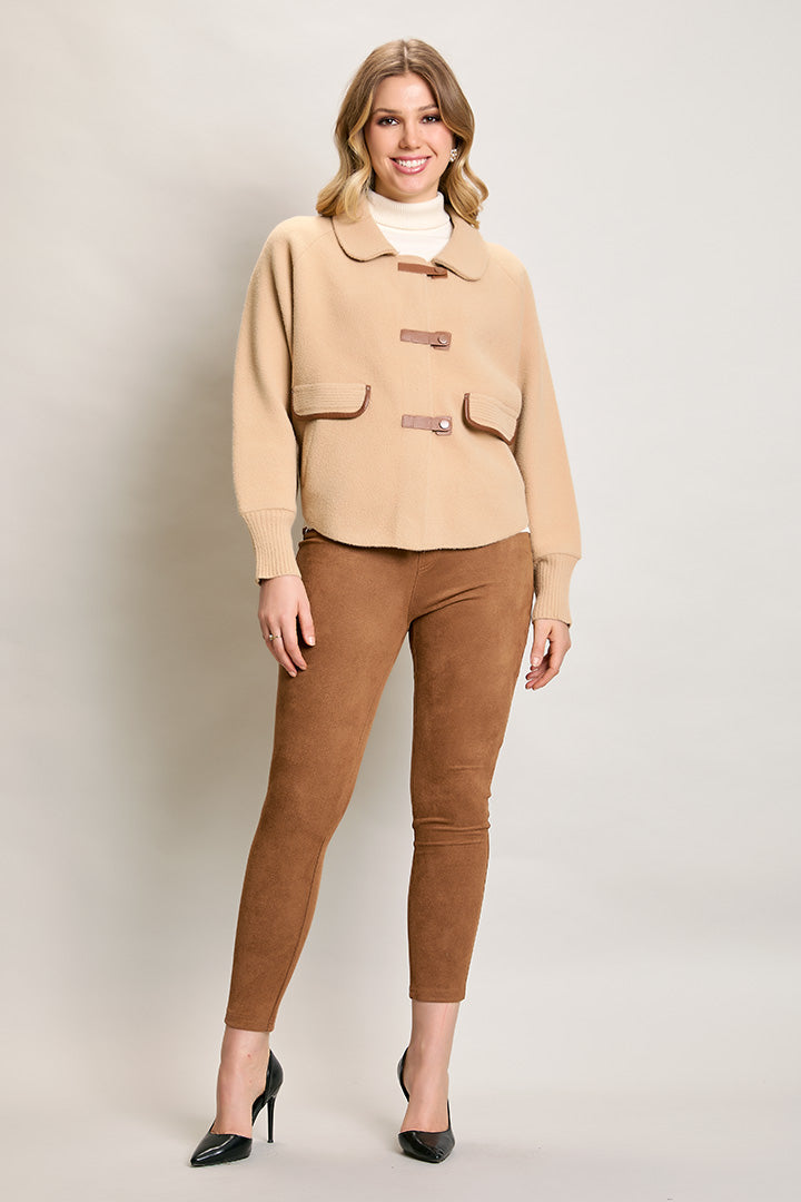 Abrigo corto color camel cuello redondo