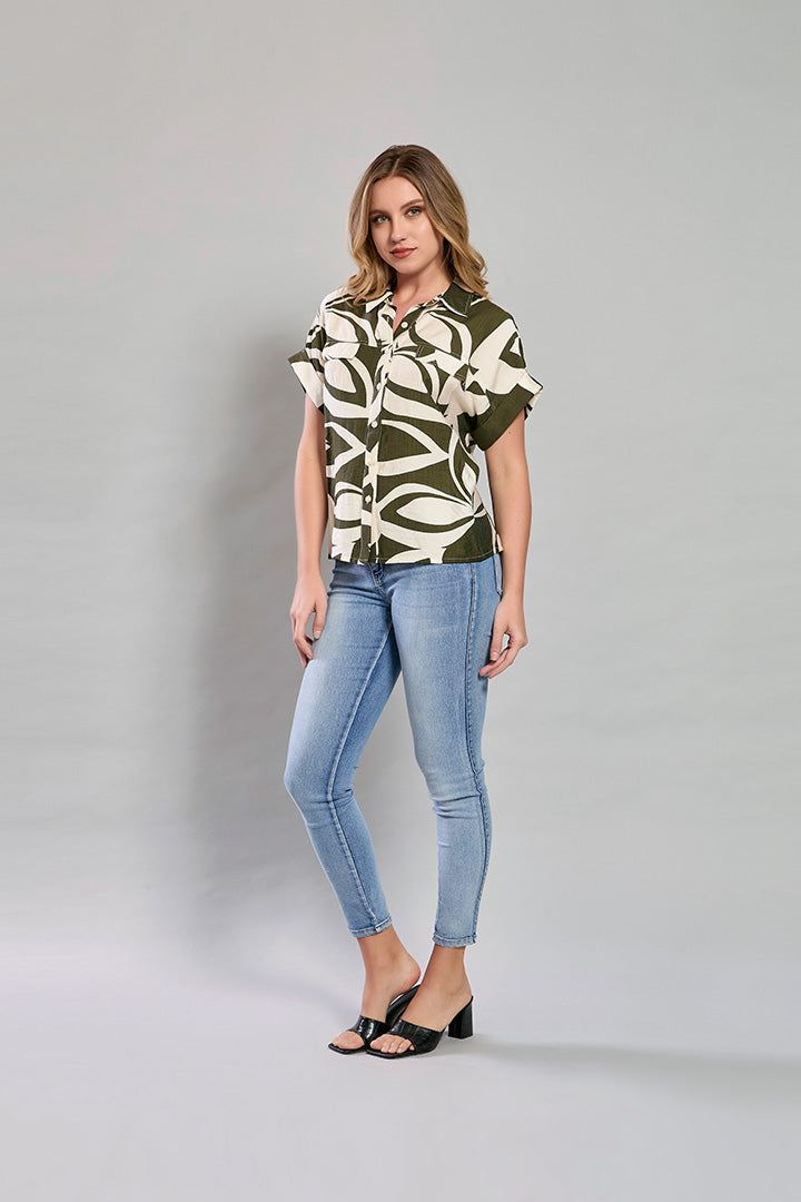 Camisa casual media manga color beige con estampado