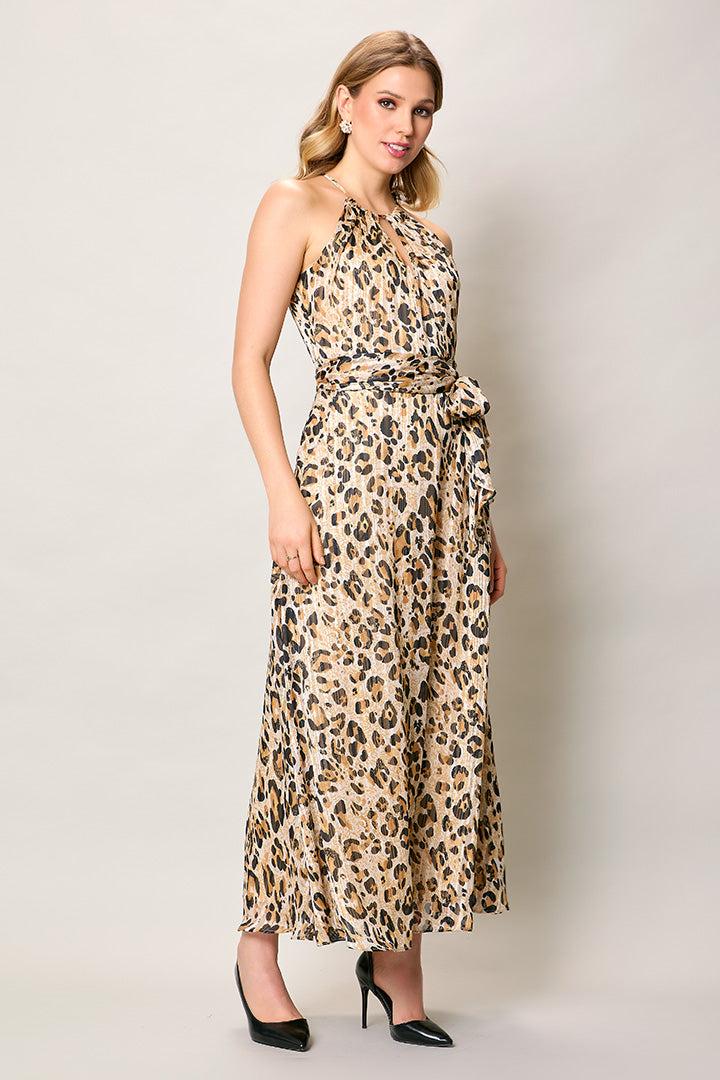 Maxi vestido tipo halter con estampado animal print