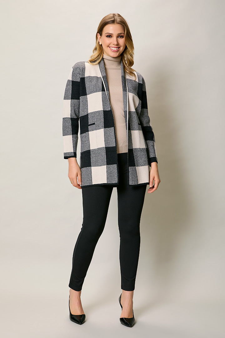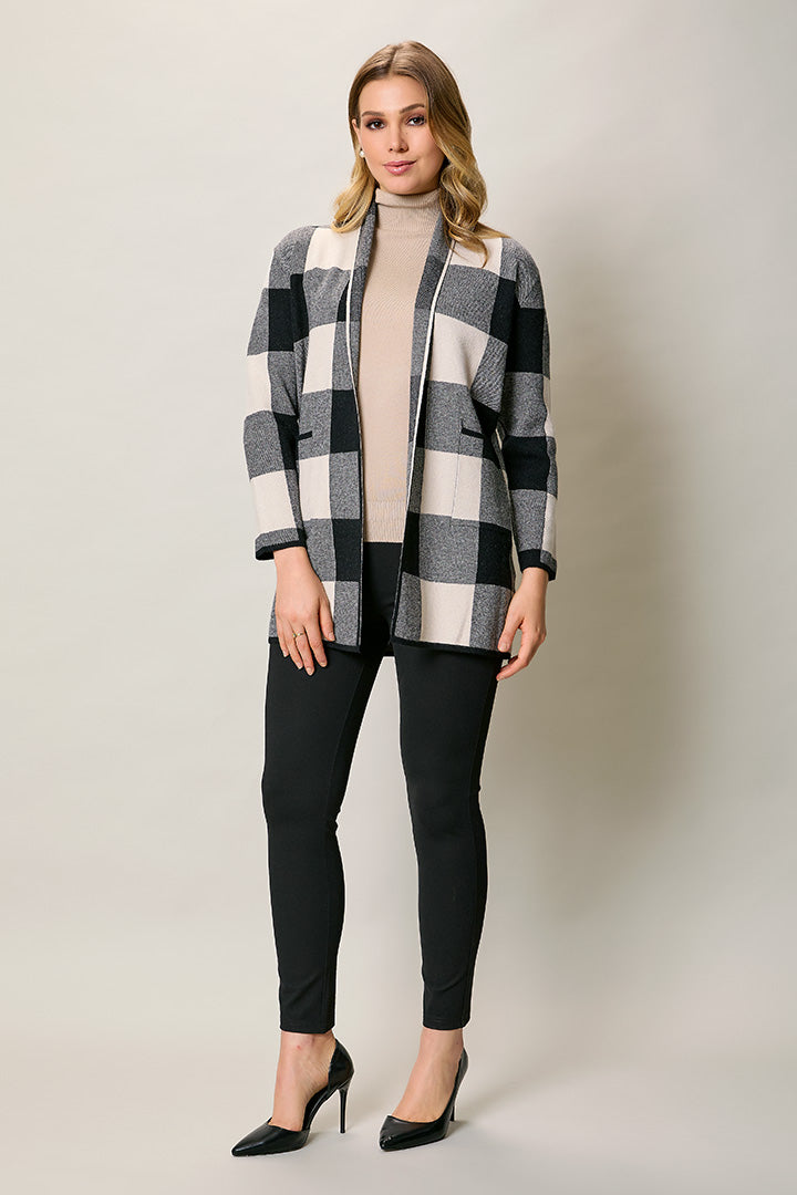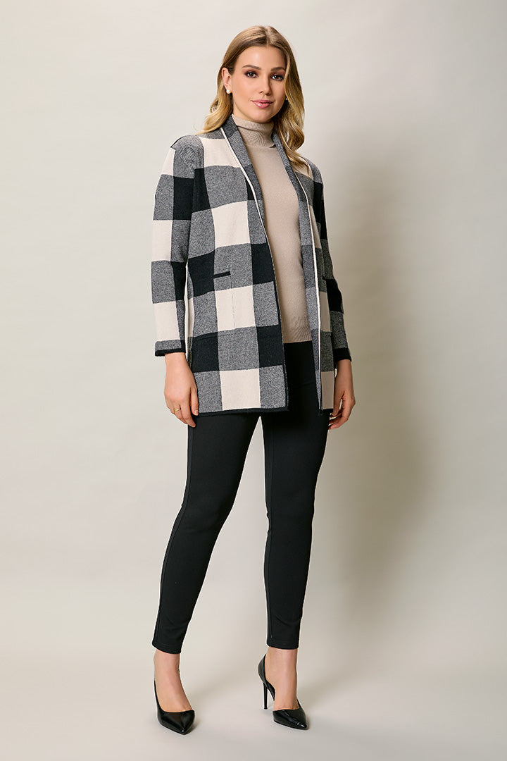 Descripción: Suéter largo casual estampado a cuadros color negro