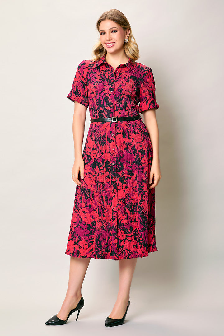 Vestido casual camisero color rojo con cinturón