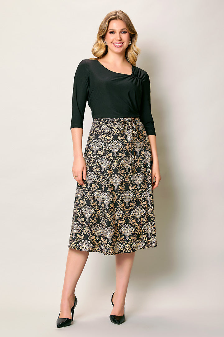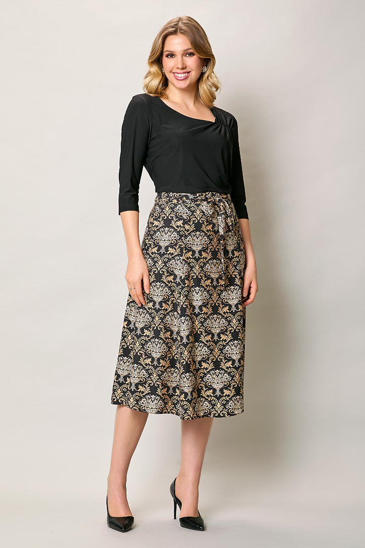Descripción: Vestido elegante color negro manga 3/4 falda estampada