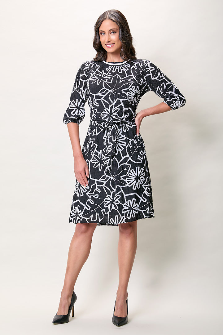 Vestido casual color negro con estampado manga 3/4