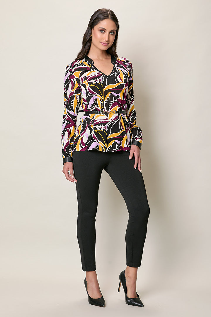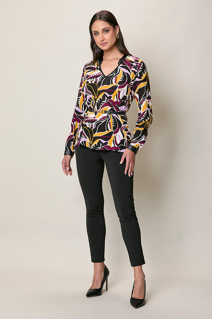 Blusa estampada multicolor manga larga cuello v