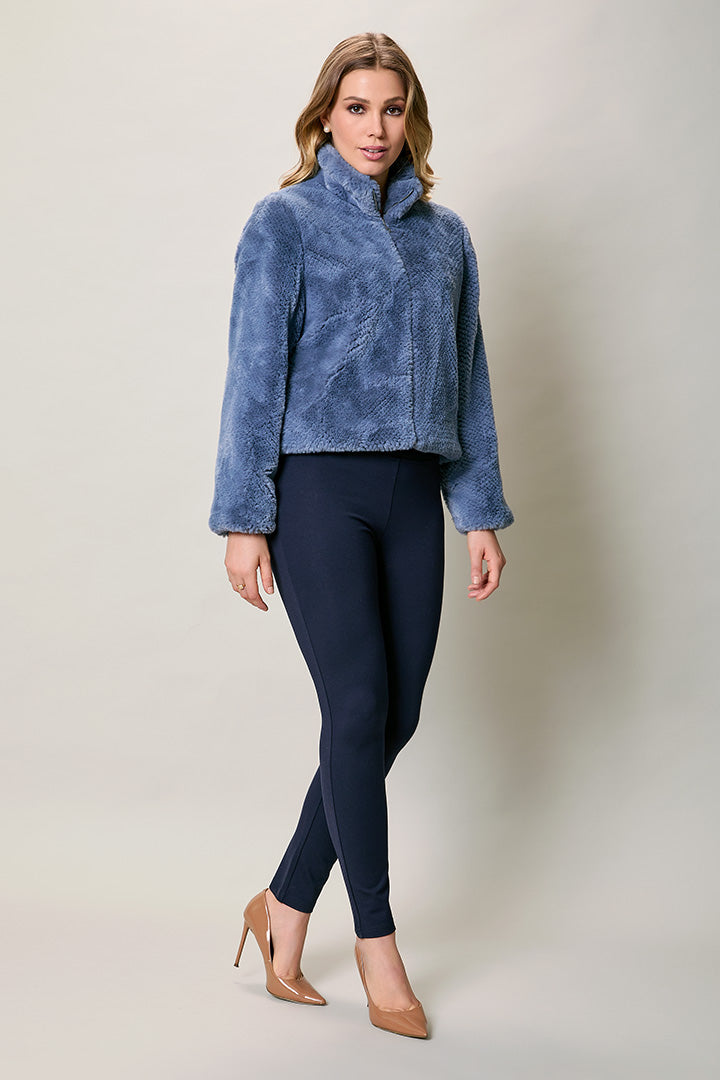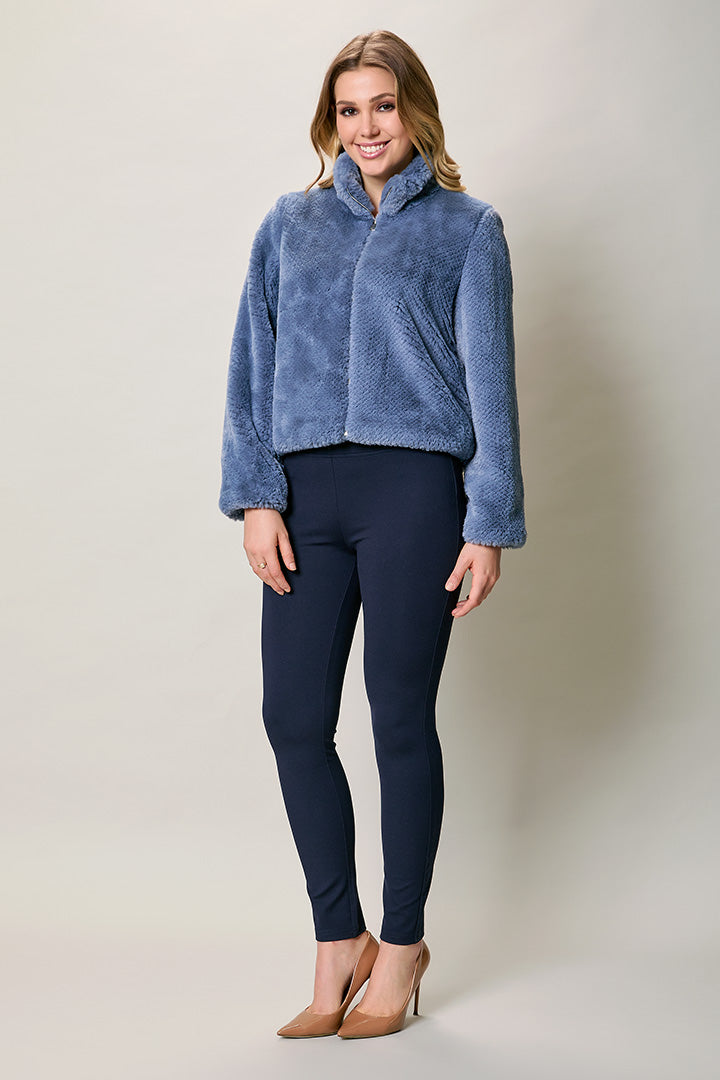 Chamarra casual afelpada color gris con cierre
