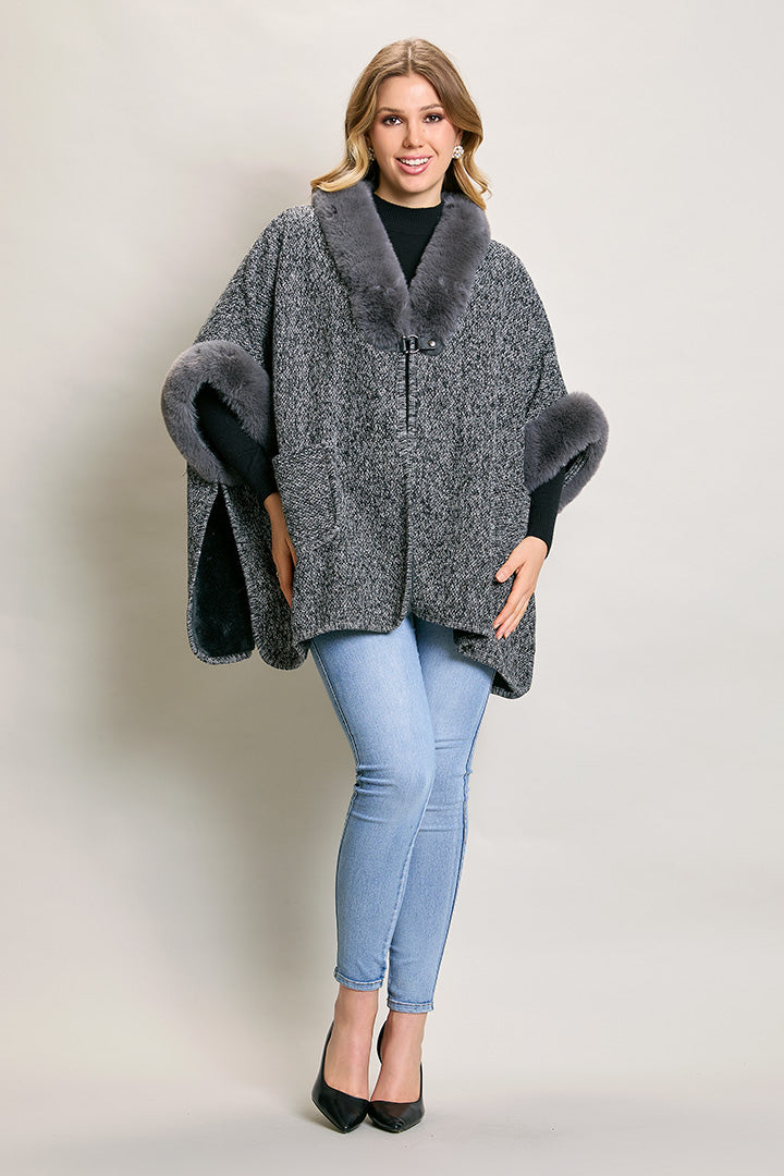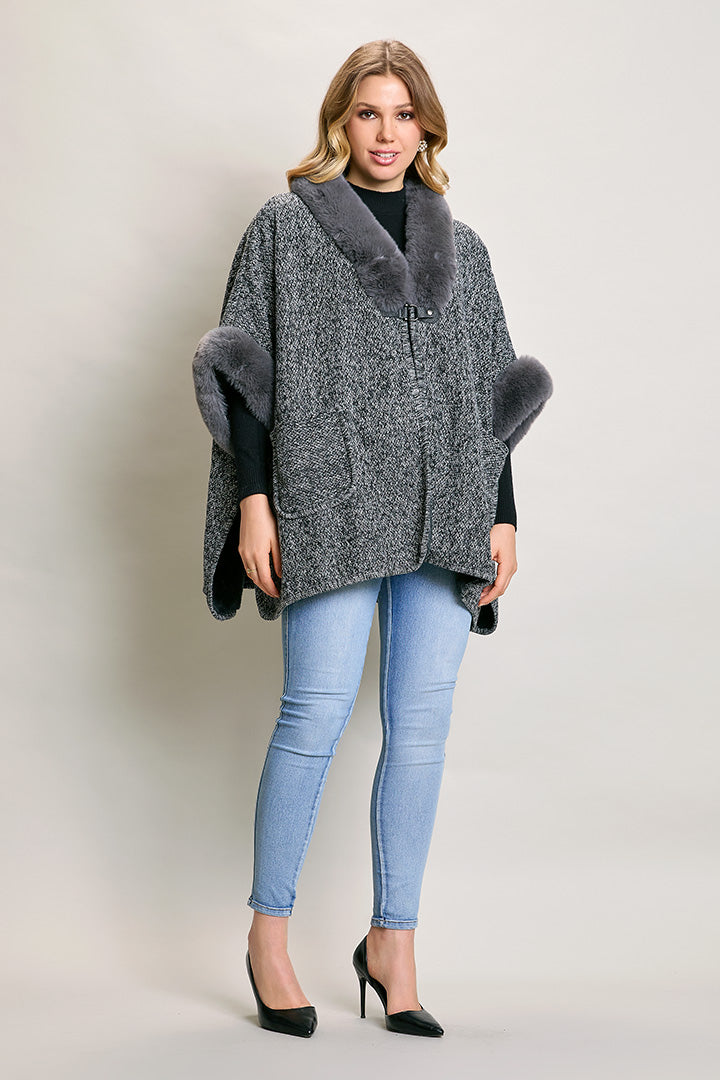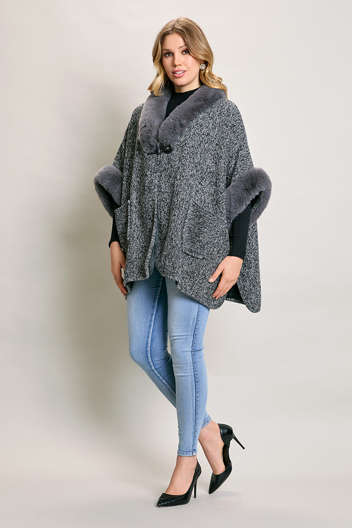 Capa corta invernal color gris con detalles afelpados
