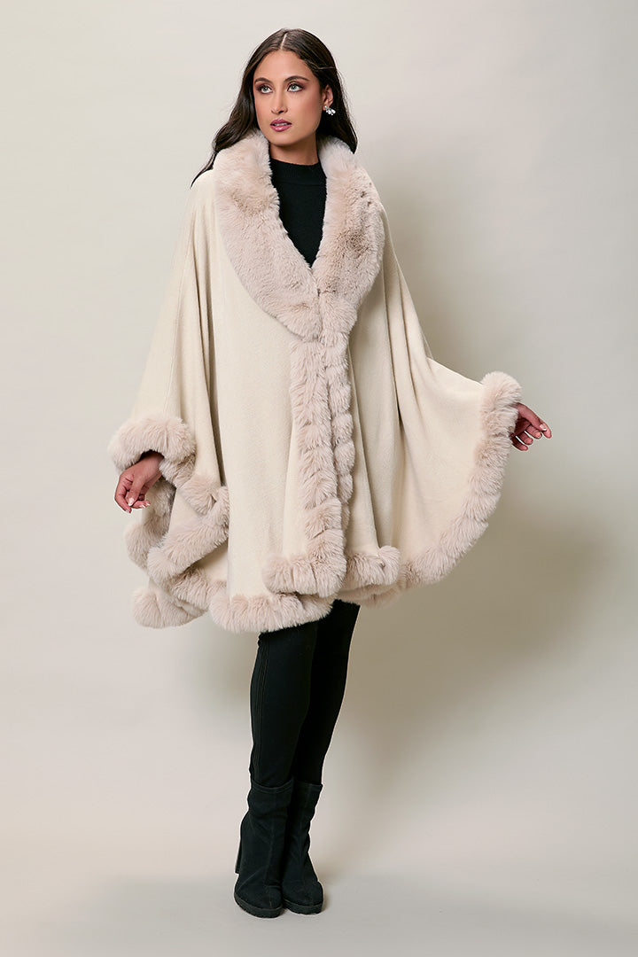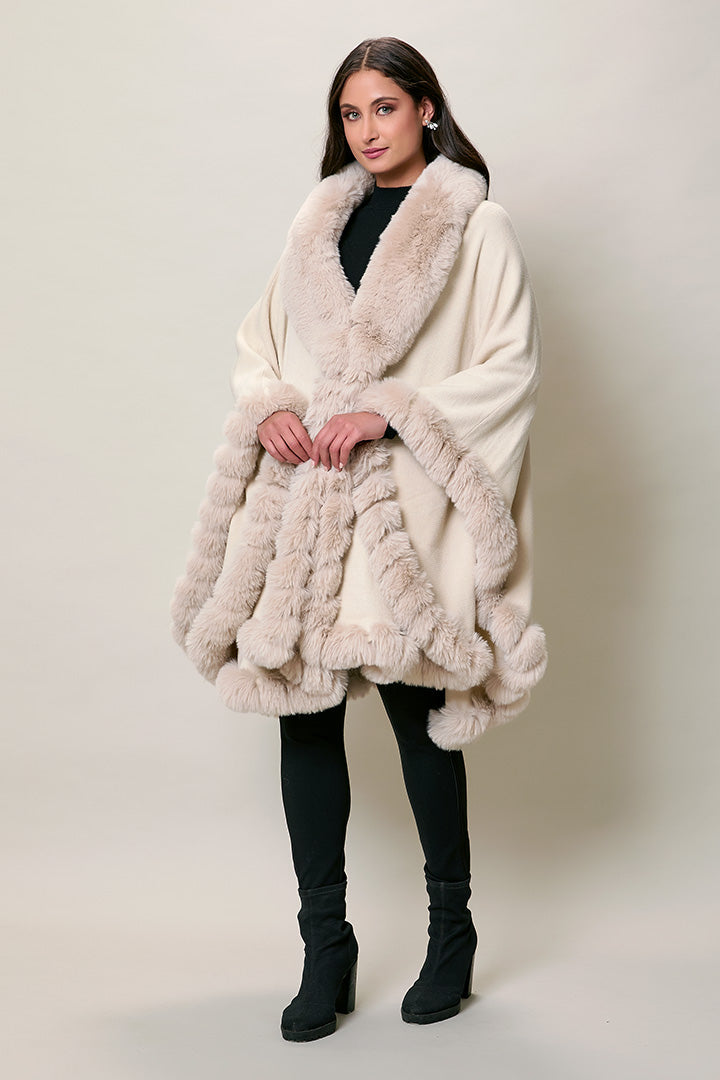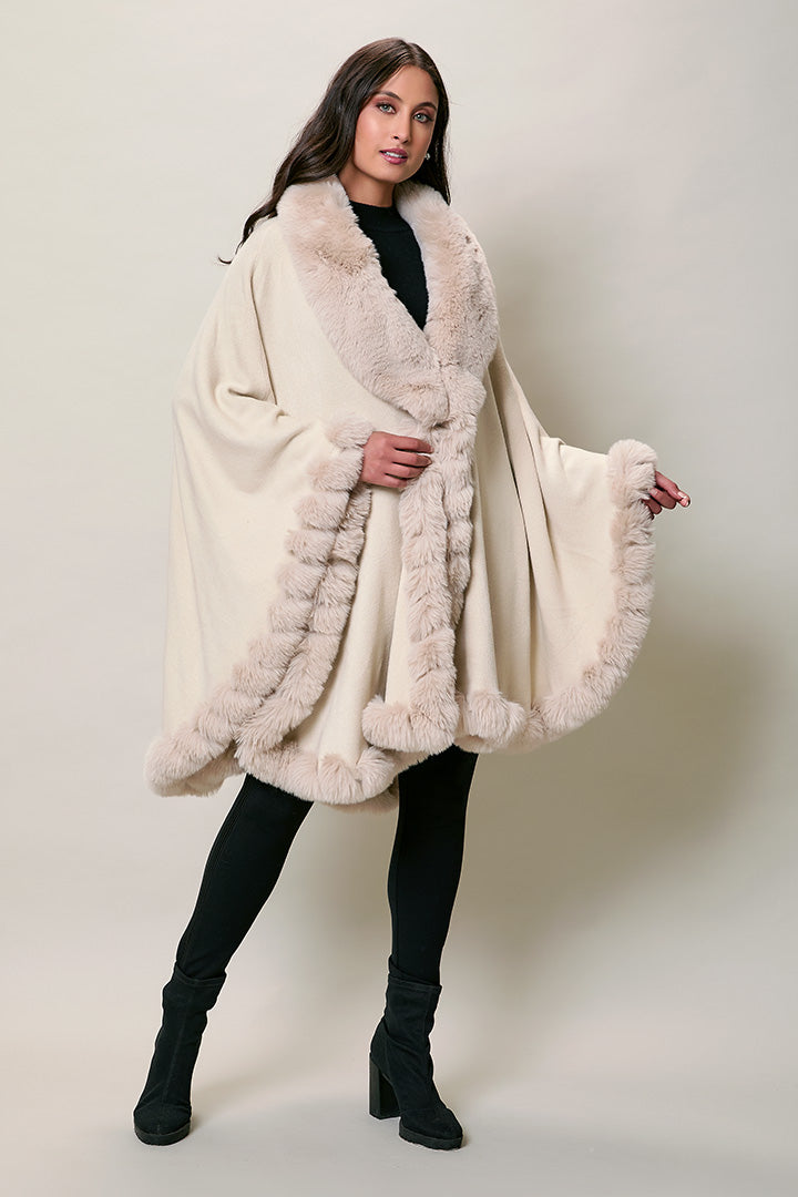 Descripción: Capa invernal elegante color hueso con detalles de felpa