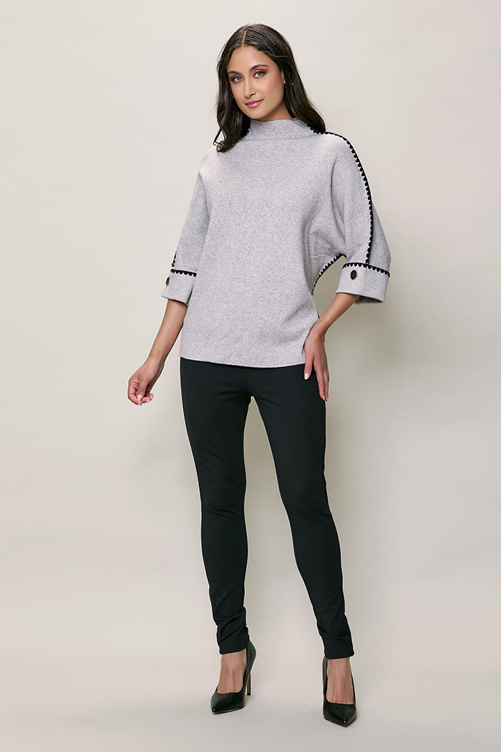 Descripción: Suéter casual color gris cuello alto manga 3/4