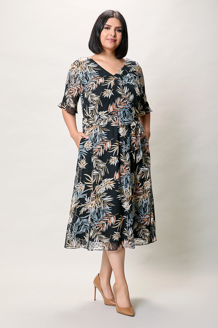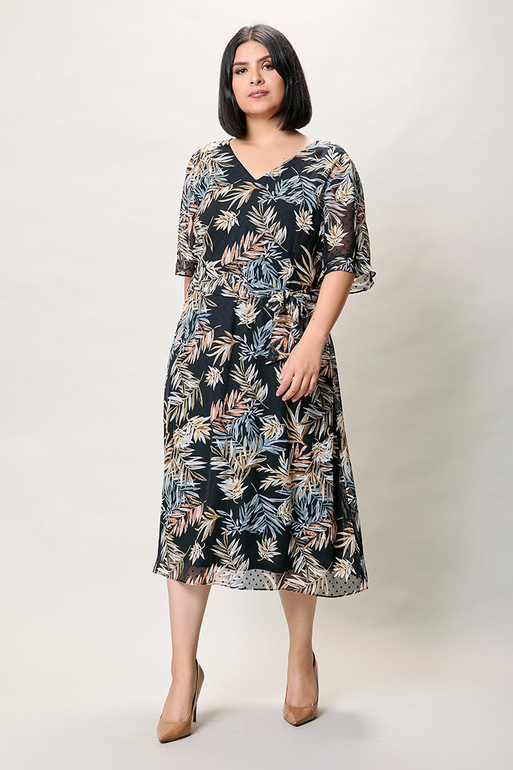 Vestido plus cuello v con estampado multicolor